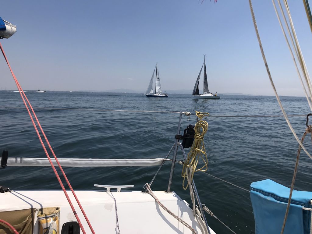 復路は風が弱いのと暑さの我慢大会 時折見えるアマモの漂流物にヒヤヒヤしながら、観音開きでジリジリしながら