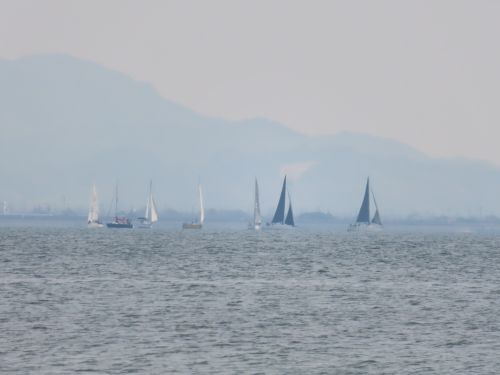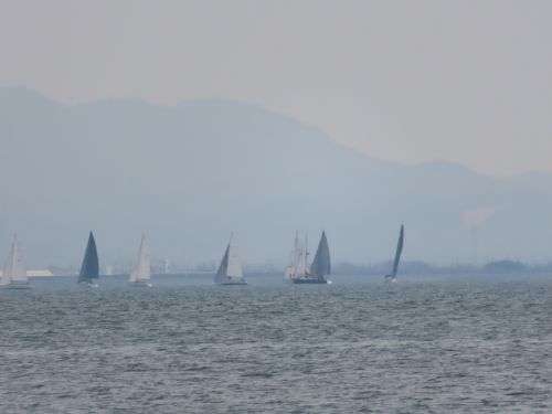 朝方の雨が上がり薄日が差す穏やかなレース日和になりました KYCから10艇 富貴はたったの2艇で寂しい限りだ なんとか参加艇が増えてほしい