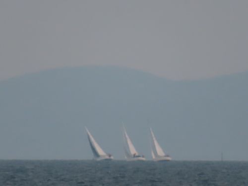 13〜16㌩と強まった風 この季節の風は厚いというか密度が濃いらしく大きくヒールしてガンネルを波が洗う スタート前にジブ選択を迷ったが今日のような波が立っていない海面だっらやはりNo3だった と反省
