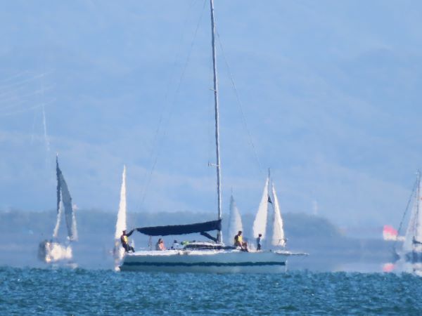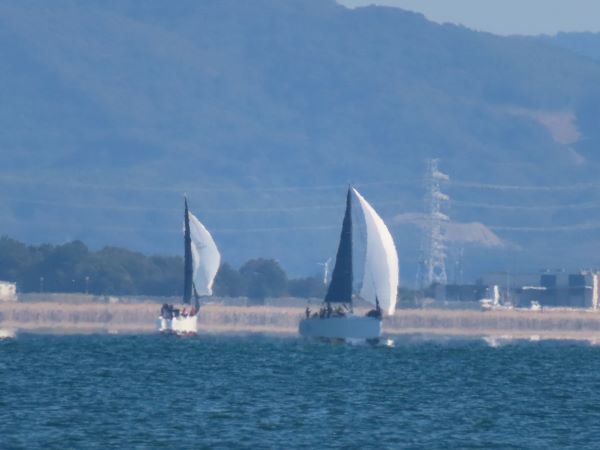 スピンホイストでも小さなトラブルがあったものの中盤を保ち、上りで抜いてやると意気込んだもののどんどん風が落ちてきて、あと数百メートルでタイムリミットを迎えた。結局全艇フィニッシュできずノノーレースになりました。