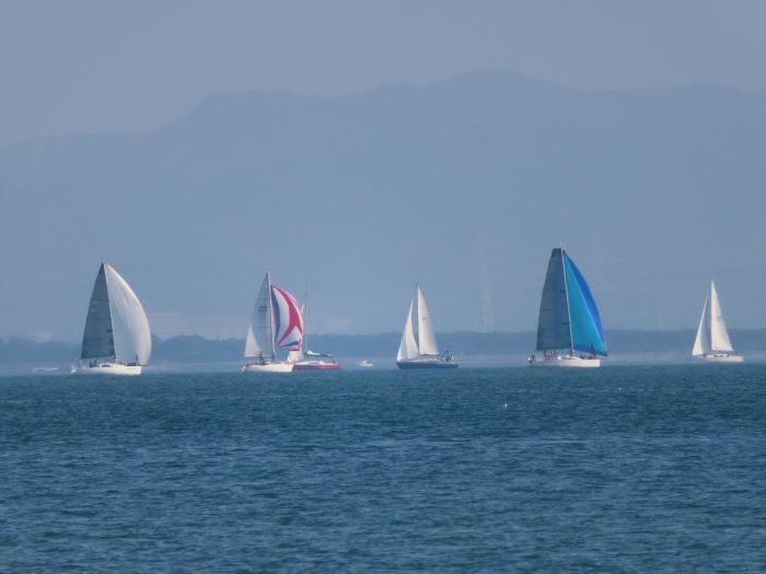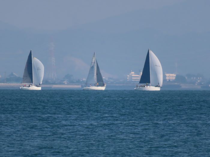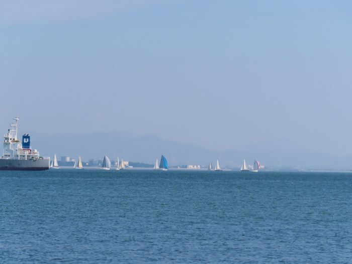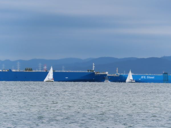 それでもマーク回航後の上りで挽回して食い込み着順2位でフィニッシュしました 最後は本船の入出港に巻き込まれそうになりヒヤヒヤものでした