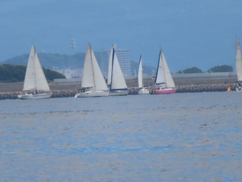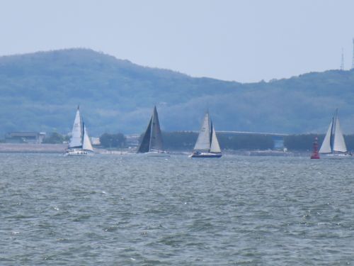 5月は富貴クラブ単独でのレース セーリングフェスタ やや強めの北西の風の中9艇の参加でした いつも出てくれている3艇が瀬戸内海へのクルージング中なのでちょっと寂しい