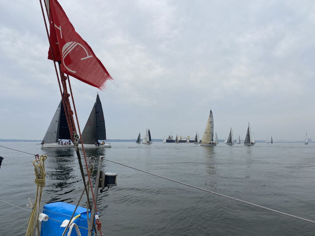 今回は富貴から9艇・衣浦16艇・碧南14艇の39艇の参加。曇天微風のなか定刻にスタートしました。